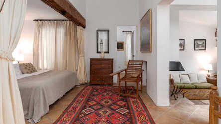 The grounds are extensive and there is a pizza oven. The swimming pool has a sunbathing area around it and a covered pergola in which you will find a bar and open kitchen.